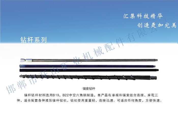 錨索鉆桿又稱B19中空六角鉆桿,采用優(yōu)質中空六角鋼,一般材質為55SiMnMoV,主要應用于錨桿鉆機使用,同時配合錨索鉆頭及其連接器。